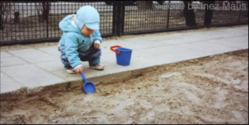 Kontakt mit Buddelsand schmerzgeplagt weint und aus diesem Grund den Sandkasten meidet. Die „Therapie“ der